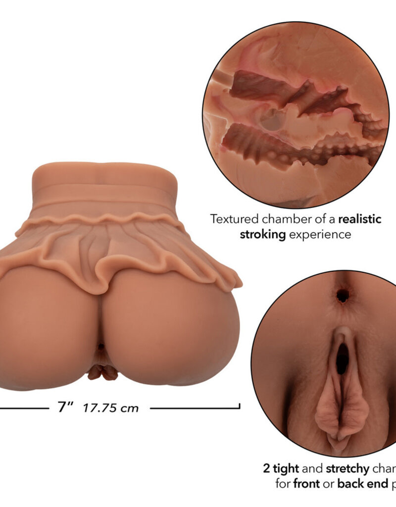 Designed with dual entry, the masturbator offers a journey of varied sensations, inviting exploration of both front and back door delights. The masturbator is soft, tight, and stretchy, while the multi-textured chamber within enhances every sense with precision.