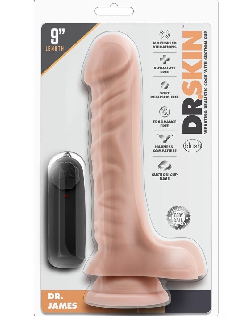 The doctor is in! The Dr. James 9 Inch Vibrating Cock with Suction Cup aims to please with its soft, realistic feel. This toy's multi-speed vibrations are adjustable so you can find the right level of power for your body. Dr. James offers above-average length and girth for a filling experience.
